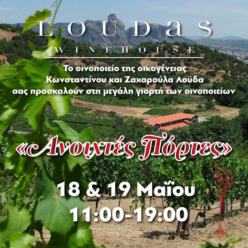 Το οινοποιείο της οικογένειας Κωνσταντίνου και Ζαχαρούλας Λούδα σας προσκαλούν στη μεγάλη γιορτή των οινοποιείων «Ανοιχτές Πόρτες» που θα πραγματοποιηθεί το Σαββατοκύριακο 18 & 19 Μαΐου από τις 11:00 έως τις 19:00.