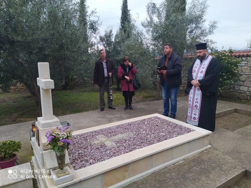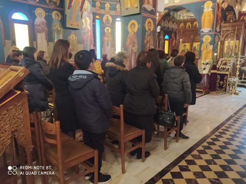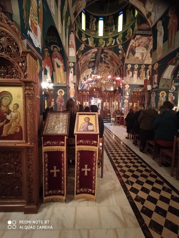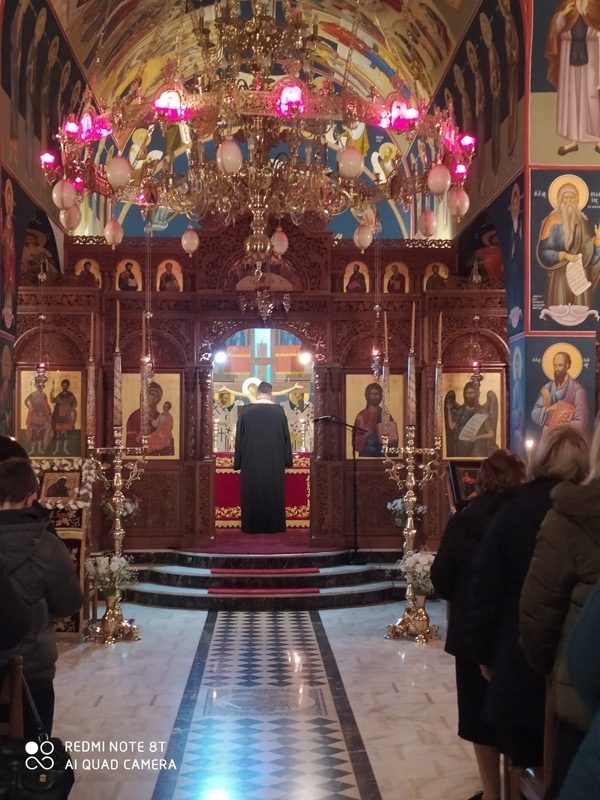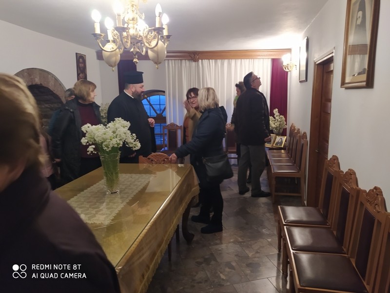 Ξεκινήσαμε από την Διάβα σαράντα δύο (42) προσκυνητές και μόλις φτάσαμε στην Ιερά Μονή μας υποδέχτηκε με μεγάλη χαρά η αδελφή Ιωσηφία. Στον Ιερό Ναό τελέσαμε την Ακολουθία του Μεγάλου Αποδείπνου. Ακολούθως, τελέσαμε τρισάγιο για τους κεκοιμημένους, Μητροπολίτη Σταγών & Μετεώρων κυρό Σεραφείμ, Πρωτοσύγκελλο π. Γεώργιο Στέφα και αδελφή μοναχή Χριστοφόρα, τα μνήματα των οποίων βρίσκονται πίσω από τον Ιερό Ναό.