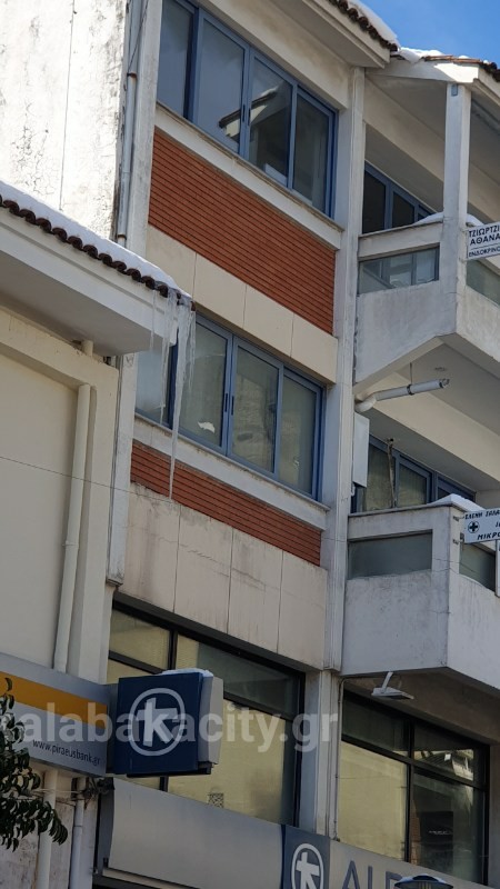 Ένας τεράστιος παγωμένος κρύσταλλος κρέμεται από την στέγη της τράπεζας Πειραιώς της πόλης, με σοβαρό κίνδυνο για τους περαστικούς!