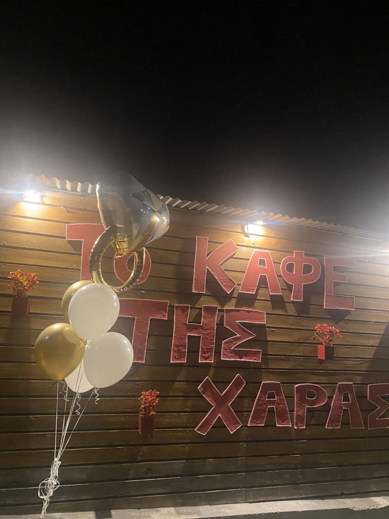 Μια υπέροχη έκπληξη επιφύλαξε ο Άγγελος στην Κατερίνα το βράδυ του Σαββάτου στην Καστανιά στον μοναδικό φιλόξενο χώρο του “Καφέ της Χαράς”.