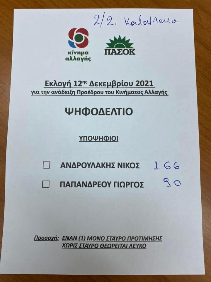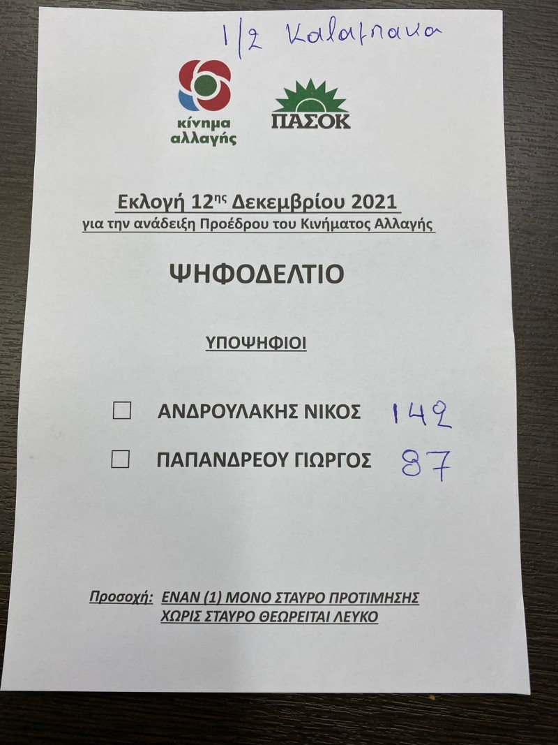 Τα αποτελέσματα των εκλογών για πρόεδρο στο ΚΙΝΑΛ – ΠΑΣΟΚ έχουμε στα δυο τμήματα όπου πρώτος αναδείχθηκε ο Νίκος Ανδρουλάκης.