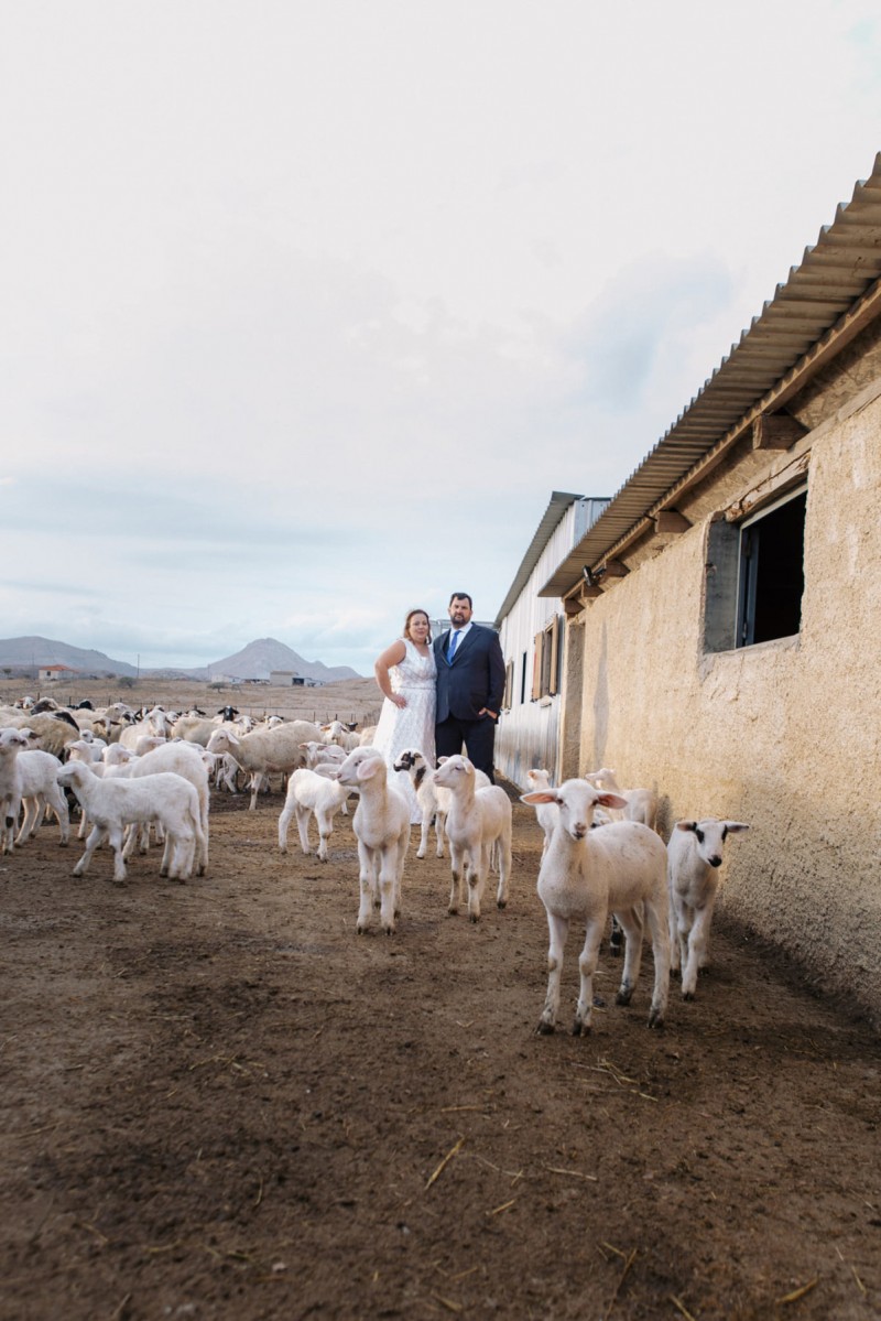 Ο γαμπρός Αθανάσιος Δημάρης είναι κτηνοτρόφος από τα Τσιμάνδρια Λήμνου, κτηνοτρόφος στο επάγγελμα και παντρεύτηκε την Λαρισαία Γεωργία Νανούλη που αποφάσισε να τον ακολουθήσει στο νησί όπου ζουν την όμορφη οικογενειακή ζωή τους. Η Γεωργία μοιράστηκε την αγάπη του συζύγου της για τα πρόβατα αποφασίζοντας από κοινού να κάνουν αυτή την ξεχωριστή φωτογράφηση για τον γάμο τους περικυκλωμένοι από τα προβατάκια τους.