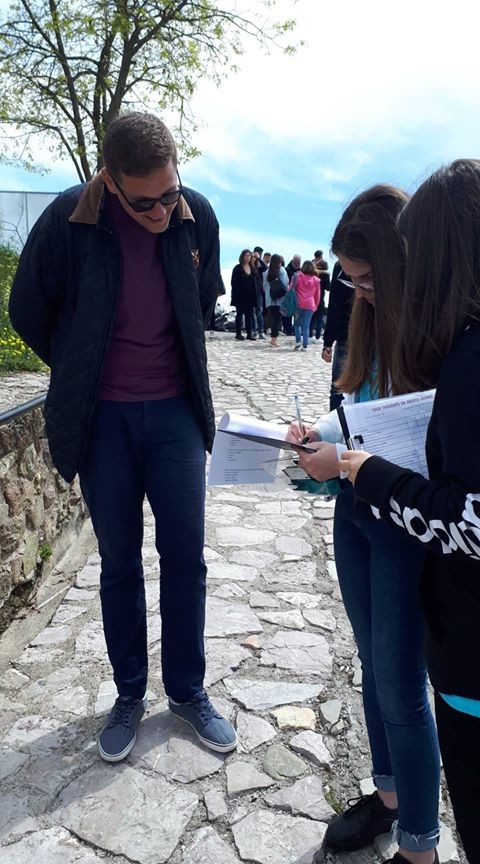 “Μια υπέροχη ηλιόλουστη μέρα, εδώ στην πόλη μας, την Καλαμπάκα, και οι μαθητές μας είχαν την ευκαιρία να κάνουν εξόρμηση στα Μετέωρα για ακόμα μια φορά, και να συνομιλήσουν με ανθρώπους από όλο τον κόσμο στα πλαίσια του πετυχημένου πανελλήνιου πρότζεκτ, στο οποίο είμαστε μέλη εδώ και 2 χρόνια, #Your_Thoughts_On_Greece!!!