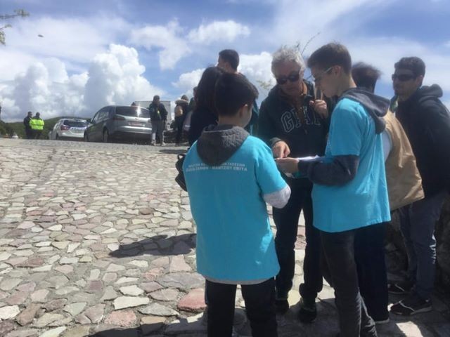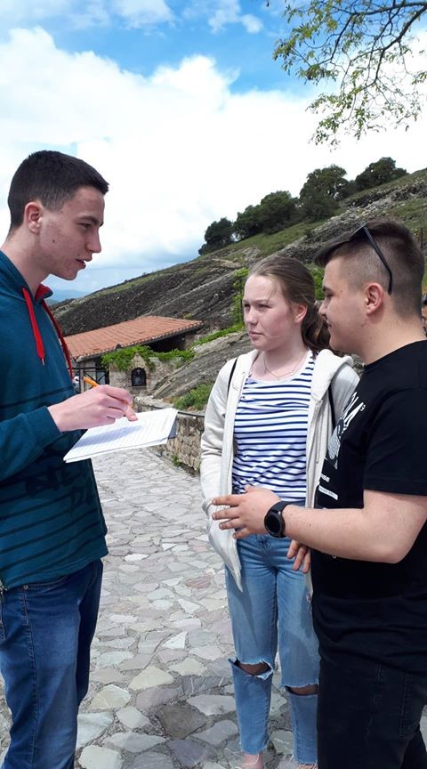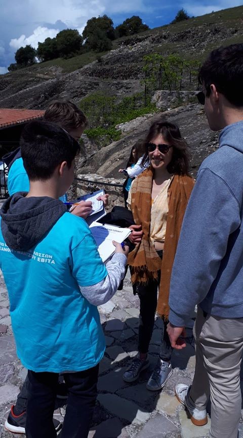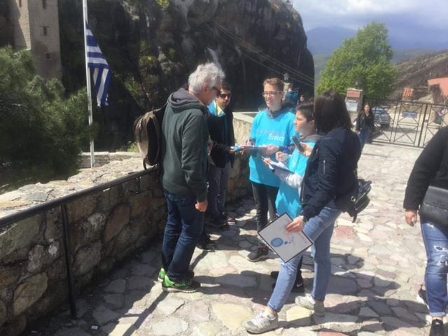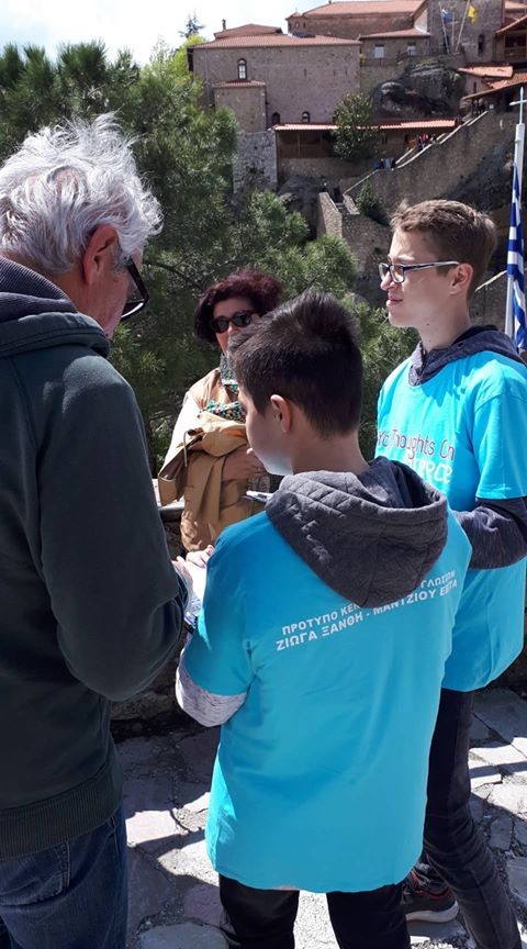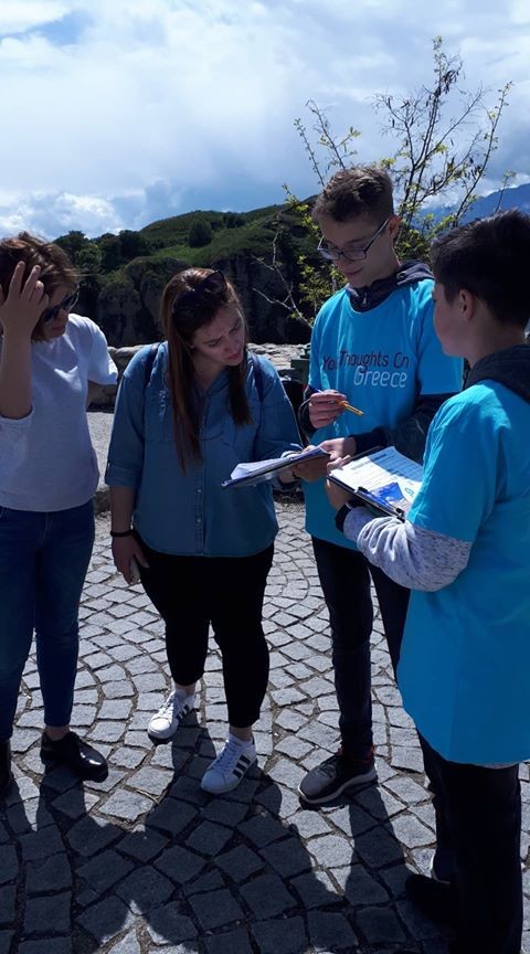 “Μια υπέροχη ηλιόλουστη μέρα, εδώ στην πόλη μας, την Καλαμπάκα, και οι μαθητές μας είχαν την ευκαιρία να κάνουν εξόρμηση στα Μετέωρα για ακόμα μια φορά, και να συνομιλήσουν με ανθρώπους από όλο τον κόσμο στα πλαίσια του πετυχημένου πανελλήνιου πρότζεκτ, στο οποίο είμαστε μέλη εδώ και 2 χρόνια, #Your_Thoughts_On_Greece!!!