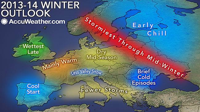 Όσον αφορά την Ευρώπη στην ίδια μοίρα με εμάς είναι και η Ιταλία ενώ η κεντρική και δυτική Ευρώπη δείχνει να έχει έναν ήπιο και άνομβρο χειμώνα . Σε αντίθεση η δυτική βορειοδυτική Ευρώπη δείχνει να έχει ψυχρό και υγρό χειμώνα κάτι που συνεπάγεται βροχές και κρύο από την Αγγλία μέχρι και την Ιβηρικό χερσόνησο(Ισπανία-Πορτογαλία).