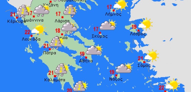 Συννεφιά με βροχή και πιθανή καταιγίδα. Οι άνεμοι βοριάδες μέτριοι, στα ανατολικά ισχυροί, 4-6 Μποφόρ. Η θερμοκρασία θα κυμανθεί από 11 έως 19 βαθμούς.