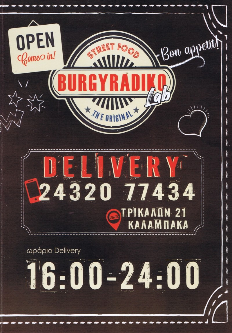 BURGYRADIKO λέγεται το νέο κατάστημα της Καλαμπάκας, που από σήμερα το μεσημέρι στις 15:00 θα είναι κοντά σας με πολλές γευστικές προτάσεις φαγητού!
