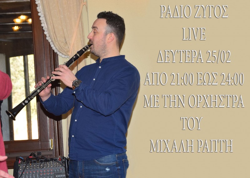 Στο Ραδιο Ζυγός θα βρεθεί στις 21:00 απόψε Δευτέρα ο συμπολίτης μας Μιχάλης Ράπτης με την ορχήστρα του όπου μέσα από ραδιοφωνική εκπομπή θα διασκεδάσουν τους ακροατές με Δημοτική Μουσική και Τραγούδια…