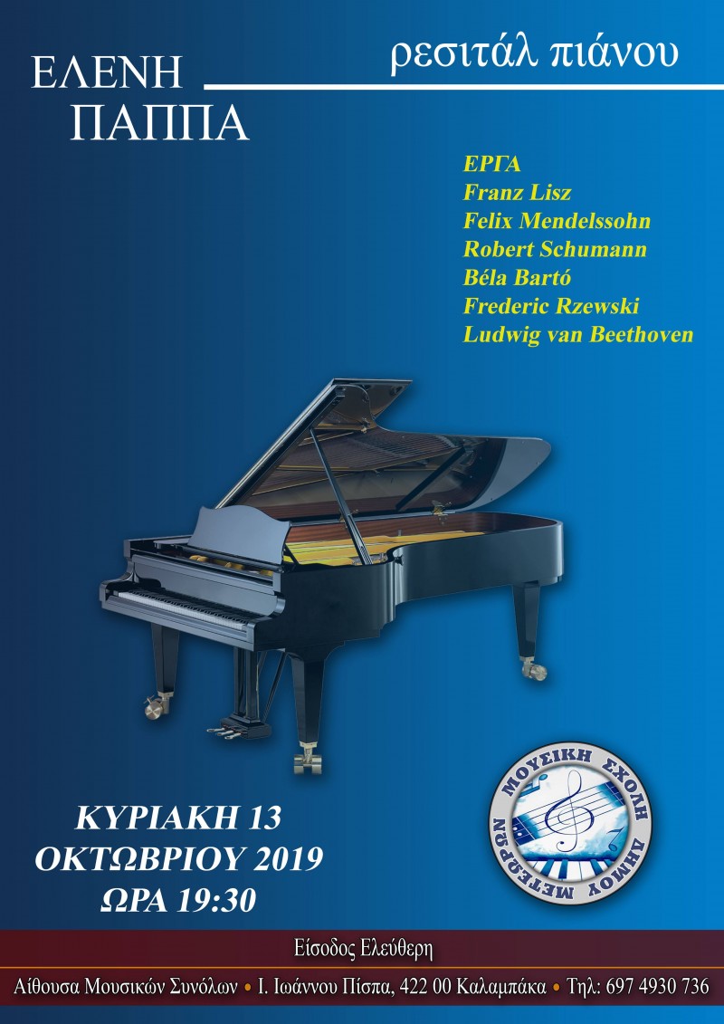 Η Μουσική Σχολή Δήμου Μετεώρων παρουσιάζει ρεσιτάλ πιάνου με την