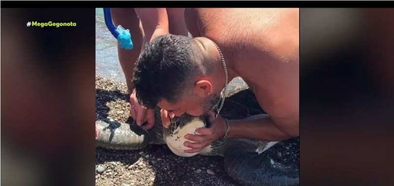 Η σωτήρια κίνηση όμως είναι αυτή που κάνει την άτυχη χελώνα να επιστρέψει στη ζωή. Ο δύτης αποφασίζει να της κάνει τεχνητή αναπνοή.