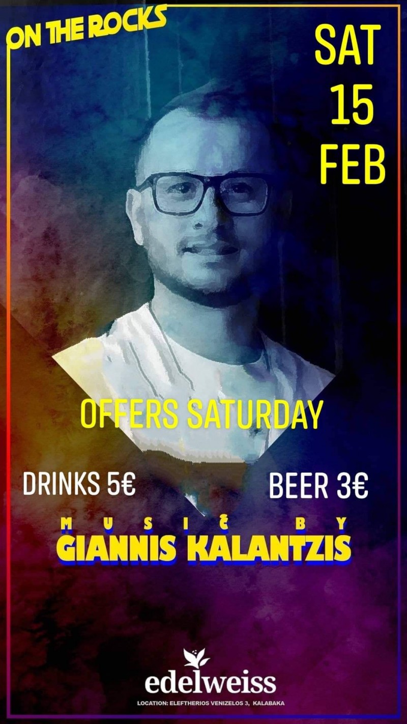 Σάββατο 15 Φεβρουαρίου το βράδυ διασκεδάστε με τις μουσικές επιλογές του μοναδικού Dj Giannis Kalantzis!!!