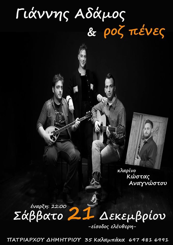 ΣΑΒΒΑΤΟ 21 ΔΕΚΕΜΒΡΗ ΓΙΑΝΝΗΣ ΑΔΑΜΟΣ ΚΑΙ ΡΟΖ ΠΕΝΕΣ ΣΤΟ ΑΕΡΙΝΟ