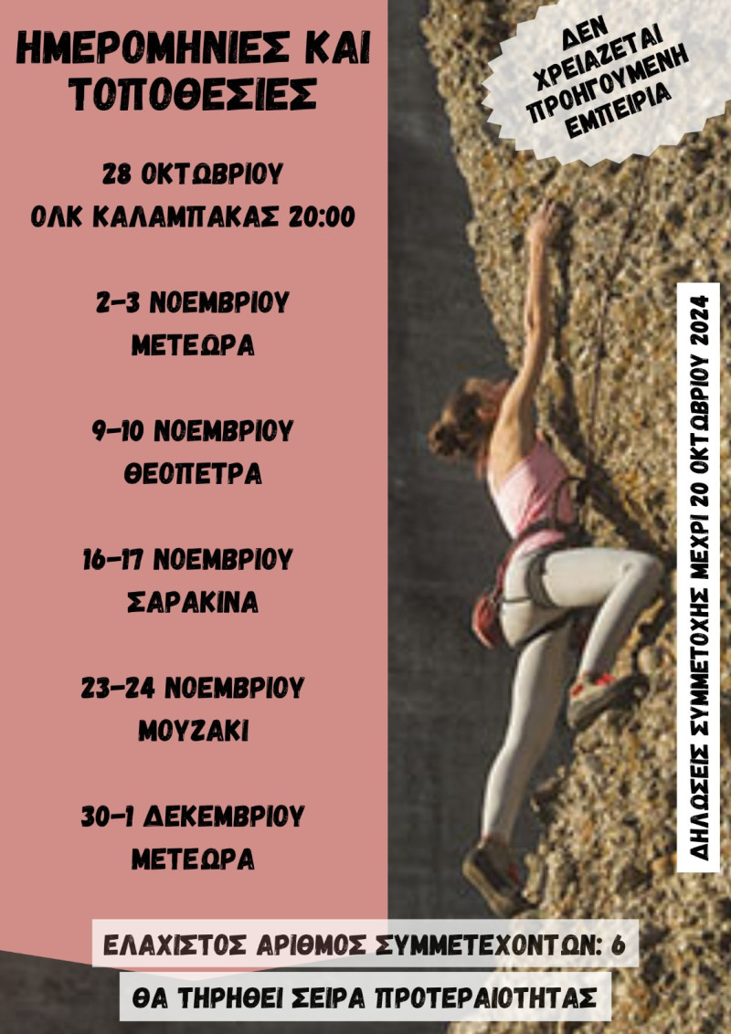 Το κόστος συμμετοχής στη Σχολή Αναρρίχησης Αρχαρίων είναι 400€.