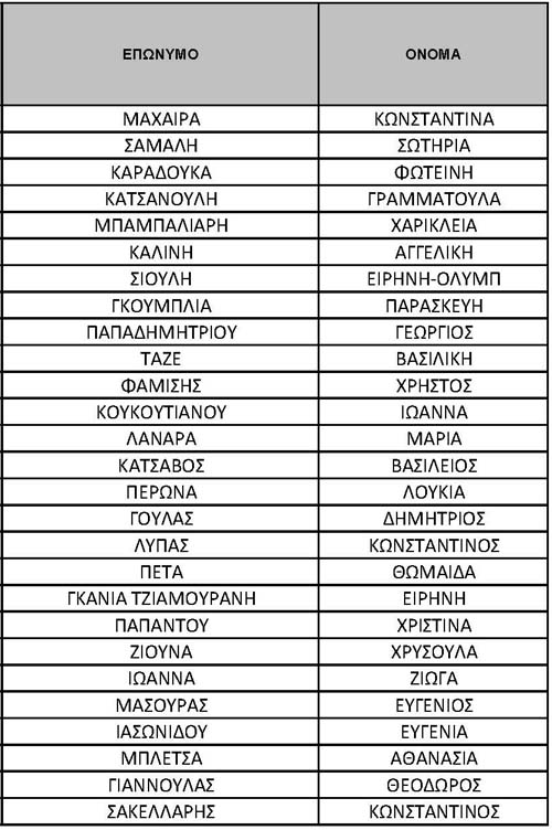 Τα ονόματα των 27 Τρικαλινών εκπαιδυτικών είναι τα παρακάτω: