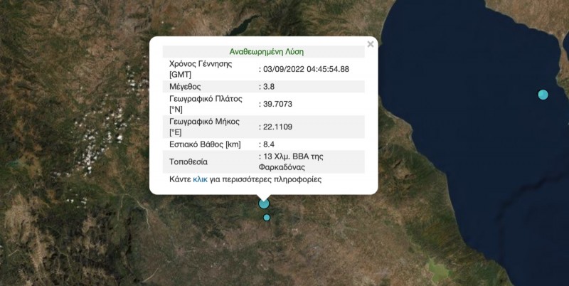 Νέα σεισμική δόνηση που έγινε αισθητή στην πόλη της Λάρισας, έλαβε χώρα στις 7.45 το πρωί του Σαββάτου στην ευρύτερη περιοχή του Τυρνάβου.