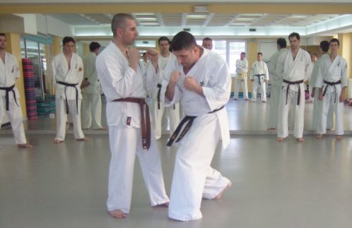 Οι ενήλικες αθλητές (12 ετών και άνω) διδάχθηκαν τεχνικές ελεύθερου αγώνα (kumite) knock-down καθώς και τεχνικές αυτοάμυνας.