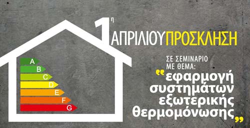 Τεχνικό σεμινάριο – Ημερίδα για την εφαρμογή σύνθετων συστημάτων εξωτερικής θερμομόνωσης για την ενεργειακή αναβάθμιση του κτιρίου περιβλήματος, διοργανώνει σήμερα Δευτέρα 1η Απριλίου στις 5 το απόγευμα η εταιρεία «Πετράνης».