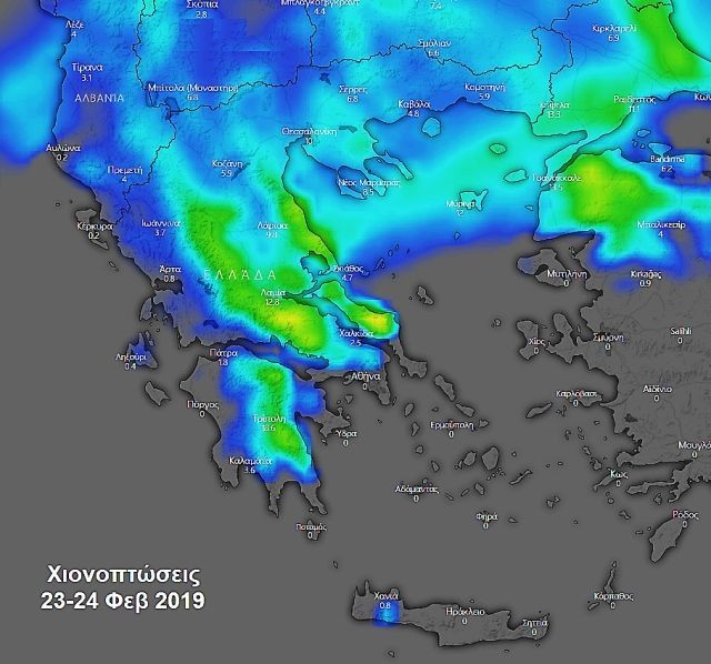 Εντονότερες χιονοπτώσεις αναμένονται στην ανατολική Θεσσαλία, στην ανατολική Στερεά, στην Εύβοια και στην ανατολική Πελοπόννησο.