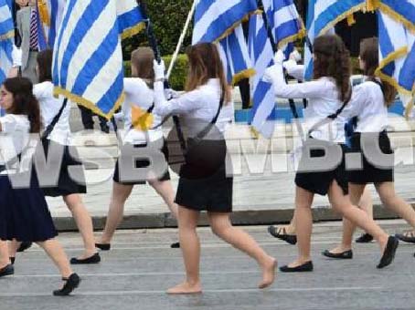 Χωρίς παπούτσια παρήλασε μία σημαιοφόρος κατά τη διάρκεια της μαθητικής παρέλασης στο Σύνταγμα.