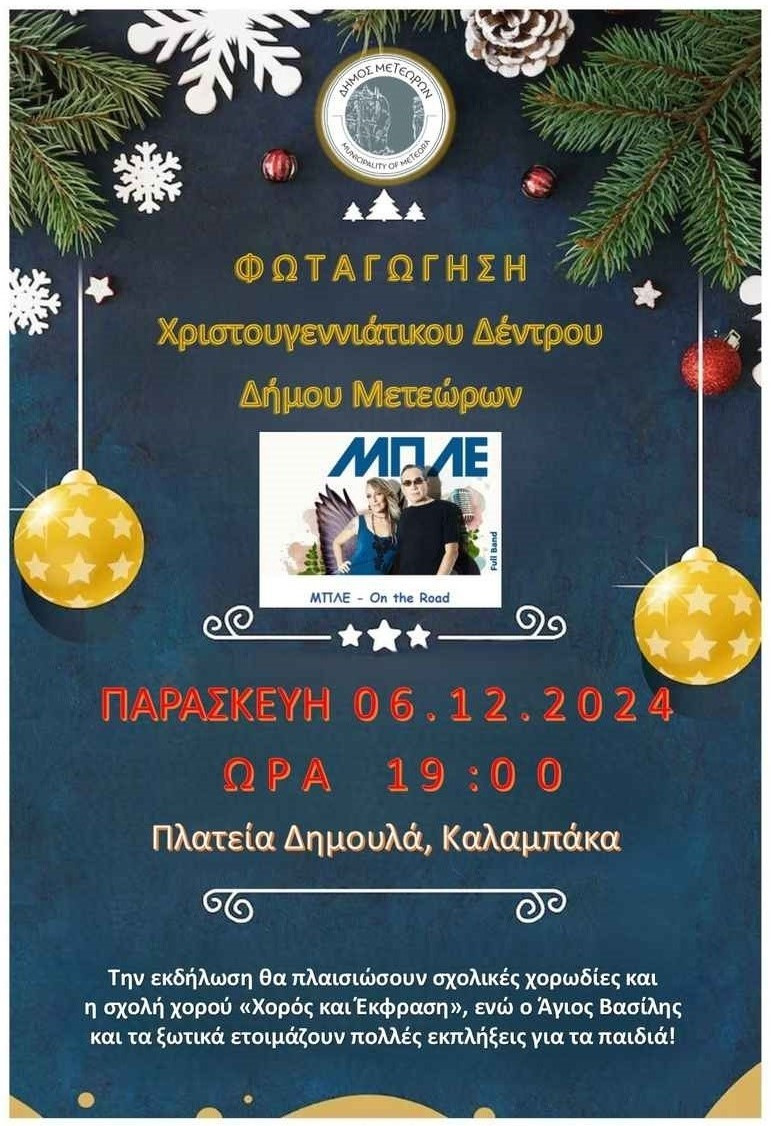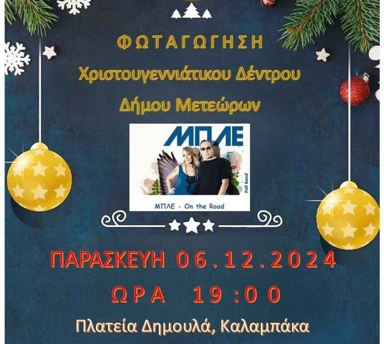 Σήμερα το άναμμα του Χριστουγεννιάτικου Δέντρου στην Καλαμπάκα – Με τους «ΜΠΛΕ» ξεκινούν οι πλούσιες χριστουγεννιάτικες εκδηλώσεις του Δήμου Μετεώρων