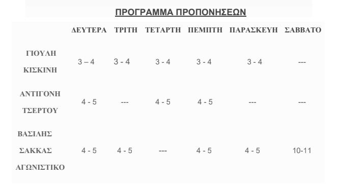 Πληροφορίες: 6978049350, κα. Γιούλη Κισκίνη