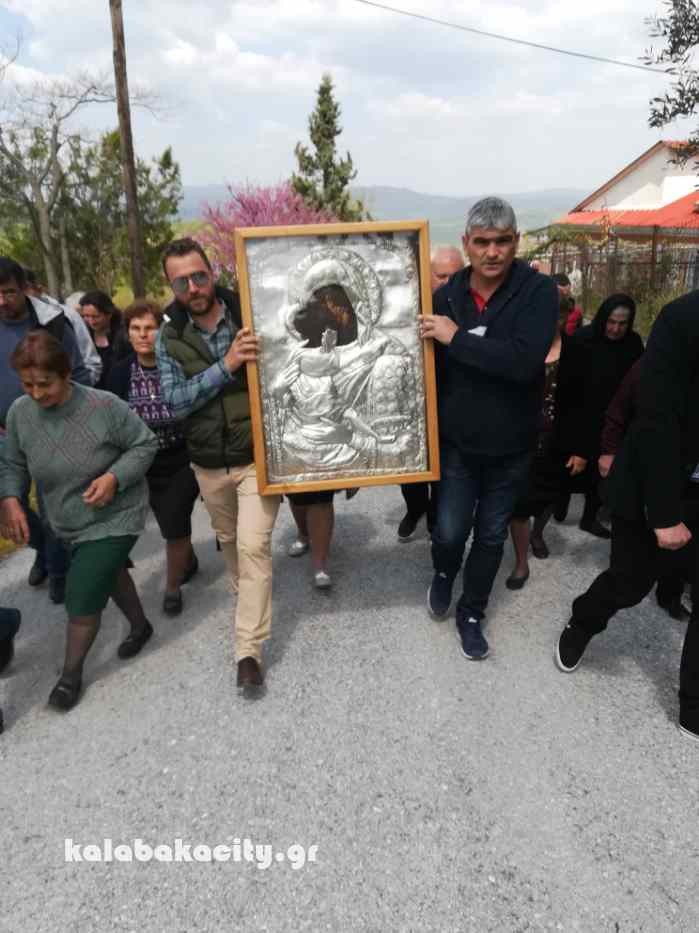 Σήμερα το πρωί όπως κάθε χρόνο κάτοικοι του χωριού από την Ιερά Μονή Μεγάλου Μετεώρου ( ΔΕΊΤΕ ΕΔΩ ) μετέφεραν την εικόνα στο χωριό τους η οποία και θα περάσει από όλα τα σπίτια του χωριού σύμφωνα με το έθιμο και την Μ. Τετάρτη θα την επιστρέψουν και πάλι στο μοναστήρι των Μετεώρων όπου φυλάσσεται.