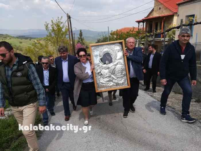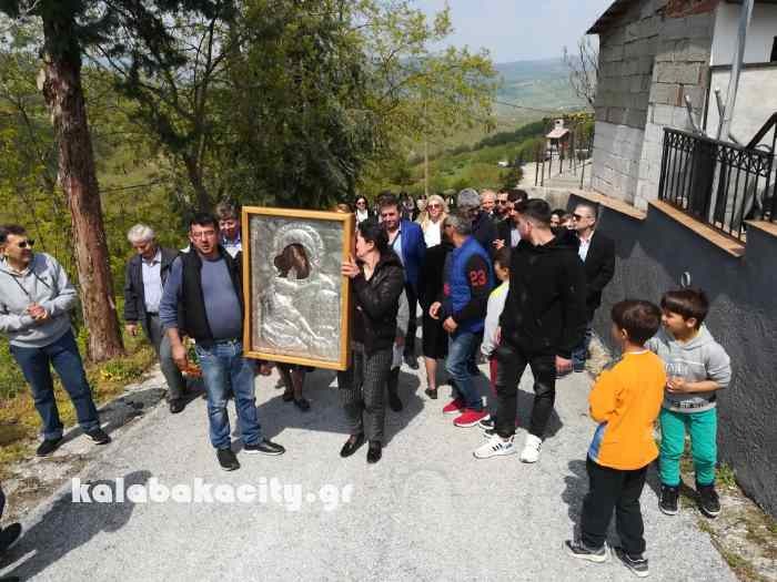 Σήμερα το πρωί όπως κάθε χρόνο κάτοικοι του χωριού από την Ιερά Μονή Μεγάλου Μετεώρου ( ΔΕΊΤΕ ΕΔΩ ) μετέφεραν την εικόνα στο χωριό τους η οποία και θα περάσει από όλα τα σπίτια του χωριού σύμφωνα με το έθιμο και την Μ. Τετάρτη θα την επιστρέψουν και πάλι στο μοναστήρι των Μετεώρων όπου φυλάσσεται.