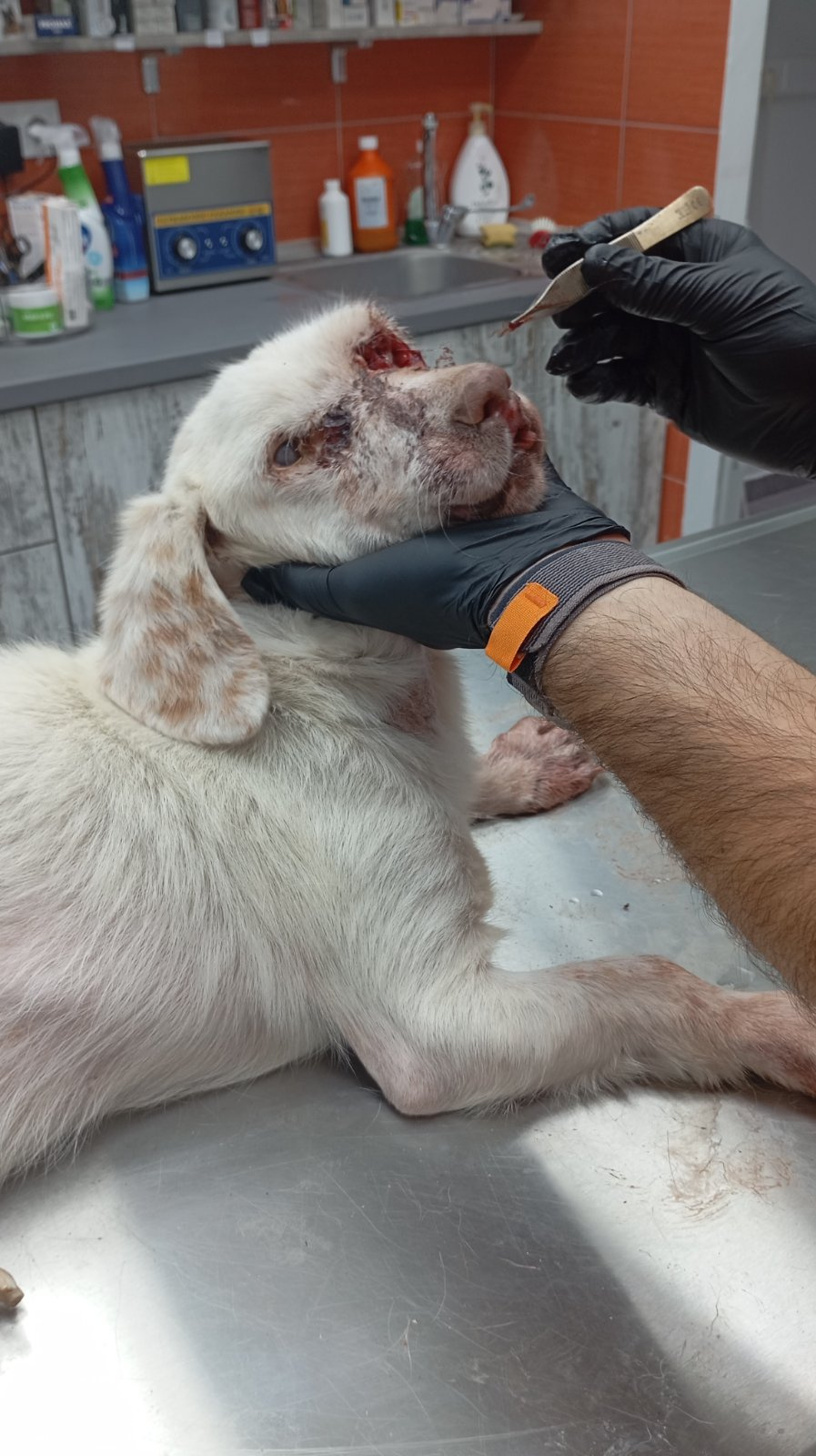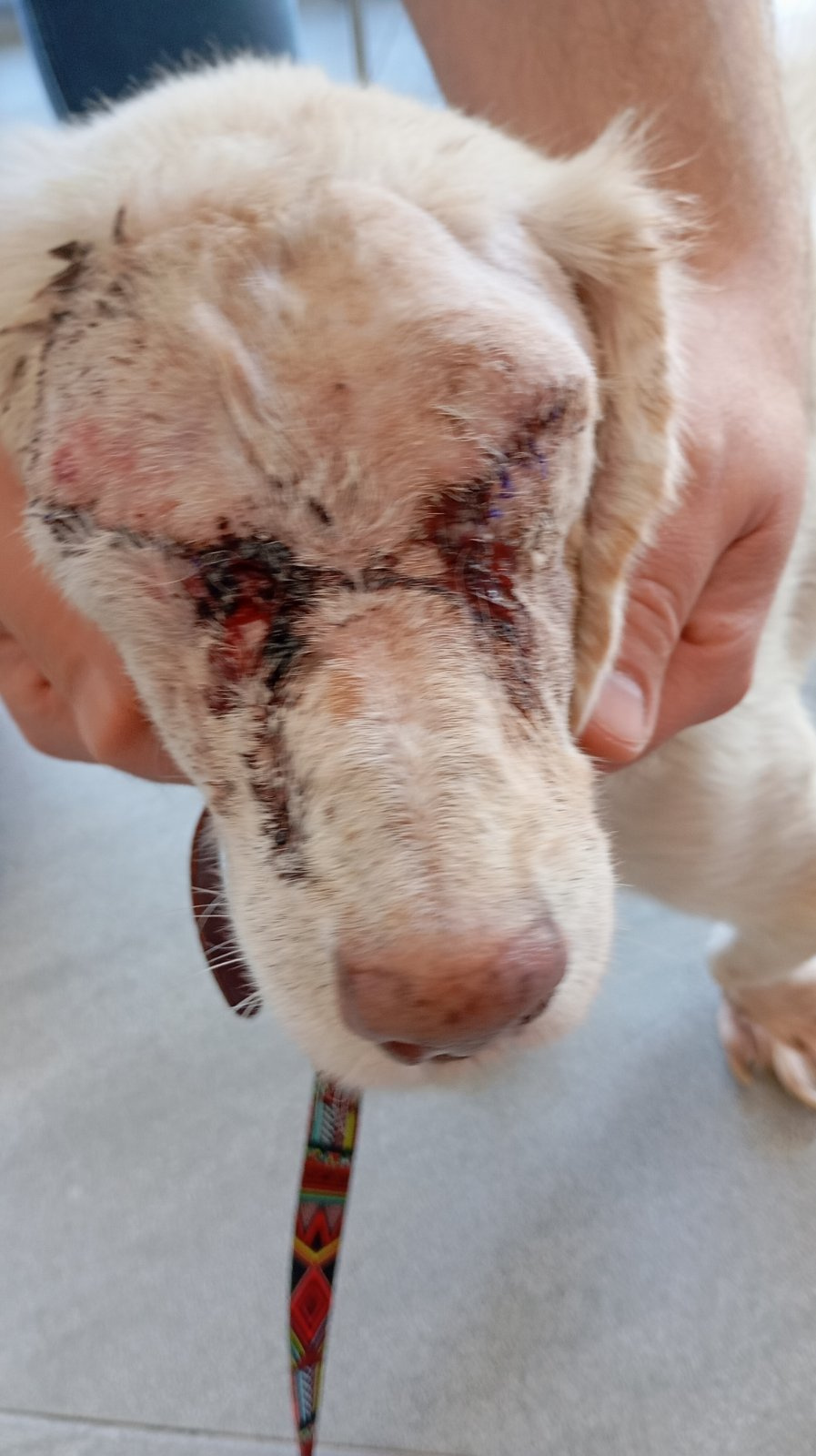 Οι άνθρωποι που τον είχαν ήταν ένα ηλικιωμένο ζευγάρι και δεν είχε καταλάβει λέει, ότι ήταν άρρωστος. Τα μάτια του σκύλου τρέχανε πύον και αίμα και υπέφερε από φρικτούς πόνους. Εν τέλει το σκυλί μεταφέρθηκε στο κτηνιατρείο όπου του αφαιρέθηκαν τα ματια αφού δεν υπήρχε καμία ελπίδα να επανακτήσει την όραση του.