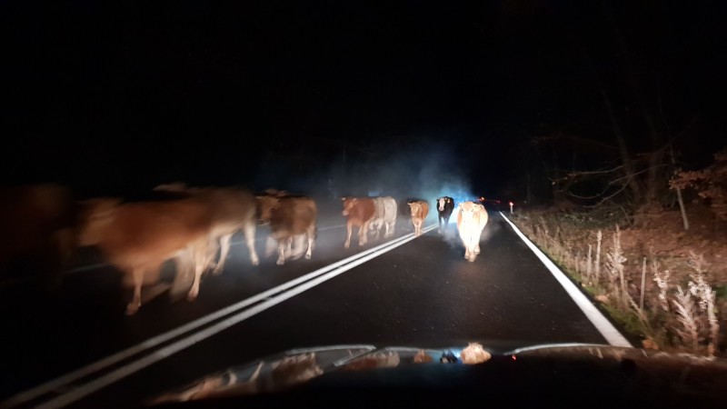 Κοπάδι με δεκάδες αγελάδες βρισκόταν μέσα στο οδόστρωμα περι τις 21:45 με μεγάλο κίνδυνο να προκληθεί σοβαρό ατύχημα.