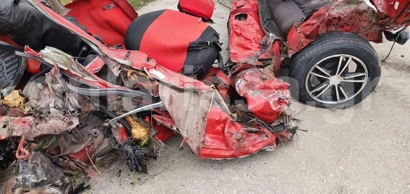 Οι εικόνες με το σμπαραλιασμένο αυτοκίνητο μαρτυρούν την σφοδρότητα με την οποία έγινε η σύγκρουση των οχημάτων.