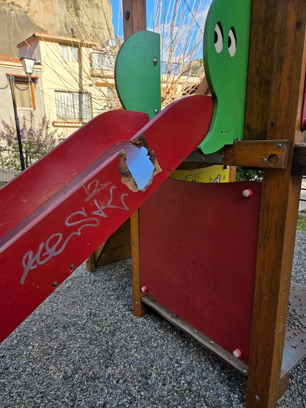 Τον κίνδυνο να προκληθεί κάποιο ατύχημα σε παιδί από την κακή κατάσταση παιχνιδιών σε παιδικές χαρές της Καλαμπάκας επισημαίνουν γονείς.