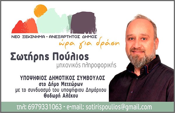 Σωτήρης Πούλιος – Υποψήφιος Δημοτικός Σύμβουλος στο Δήμο Μετεώρων με το Συνδυασμό του Υπ. Δημάρχου Θοδωρή Αλέκου