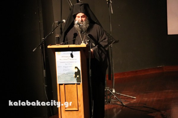Στο ασφυκτικά… γεμάτο από κόσμο Πολιτιστικό Κέντρο Καλαμπάκας οι παρευρισκόμενοι είχαν την ευκαιρία να ακούσουν αρκετά ενδιαφέροντα πράγματα για την οικογένεια και τον Άγιο Παϊσιο από τον Μητροπολίτη Ιωαννίνων και τοποτηρητή κ. Μάξιμο που ανέπτυξε το θέμα«Εὐλογημένη Οἰκογένεια» και από τον κ. Βασίλειο Σαρρή φιλόλογο και διδάκτωρ Βυζαντινής Φιλολογίας που ανέπτυξε το θέμα: «Οικογένεια καί Όσιος Παίσιος».