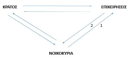 *με τον όρο οικονομικό κύκλωμα εννοούμε τις αμφίδρομες οικονομικές ροές – σχέσεις που αναπτύσσονται μεταξύ των τριών βασικών στοιχείων, του κράτους, των επιχειρήσεων και των νοικοκυριών, όπως αυτές αποτυπώνονται και στο ακόλουθο διάγραμμα: