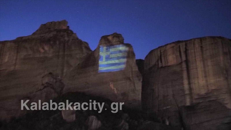 Στα χρώματα της γαλανόλευκης “ντύθηκαν” απόψε τα Μετέωρα στέλνοντας το μήνυμα της Ελευθερίας!