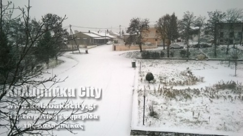Στα λευκά έχει ντυθεί ο Δήμος Καλαμπάκας όπως και άλλες περιοχές της χώρας μας, με το χιόνι να πέφτει πυκνό και να καλύπτει σκεπές και αυτοκίνητα καθώς και τους δρόμους.