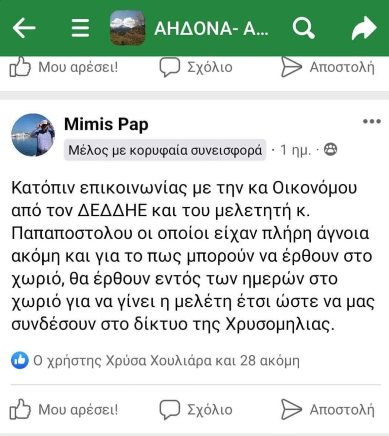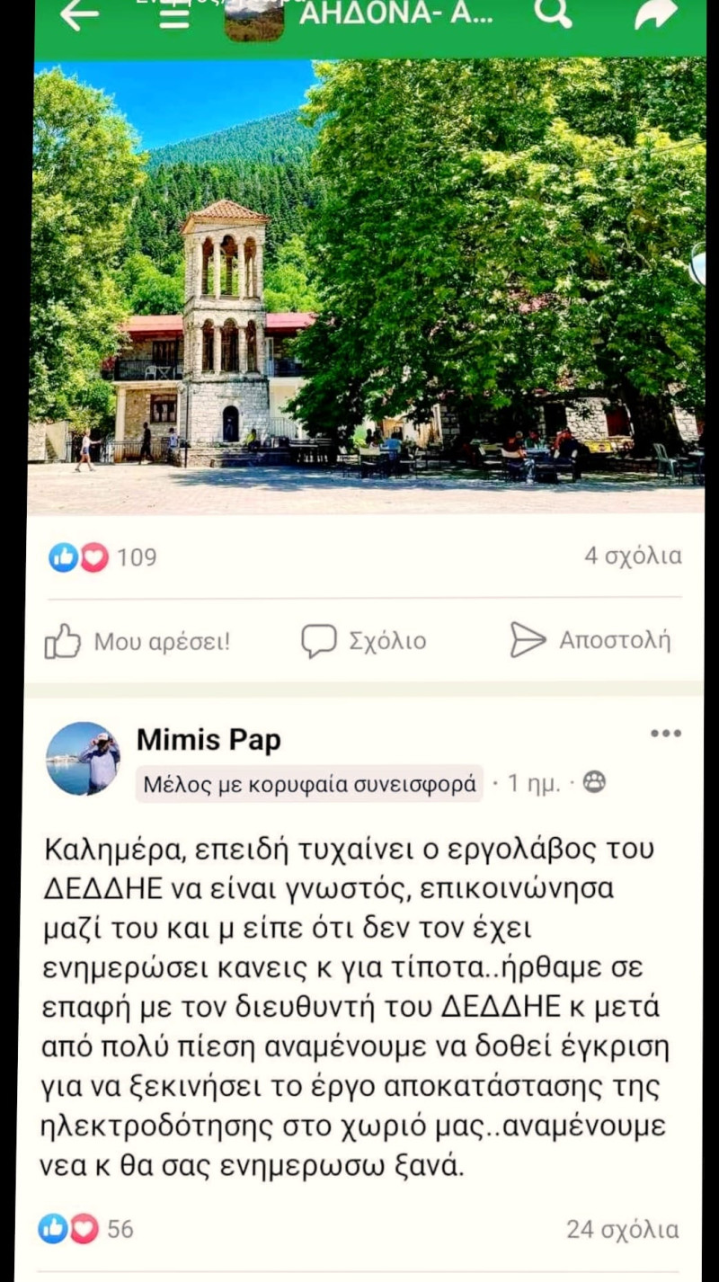 Για τον υποψήφιο τοπικό σας σύμβουλο όμως, κο Παπαπολυζόπουλο Δημήτριο που όπως ο ίδιος αναφέρει αξιοποίησε όλες τις γνωριμίες του για να παρέμβει μέσω της ΔΕΔΔΗΕ στην επίλυση της ηλεκτροδότησης της Αηδόνας έχετε να πείτε κάτι;