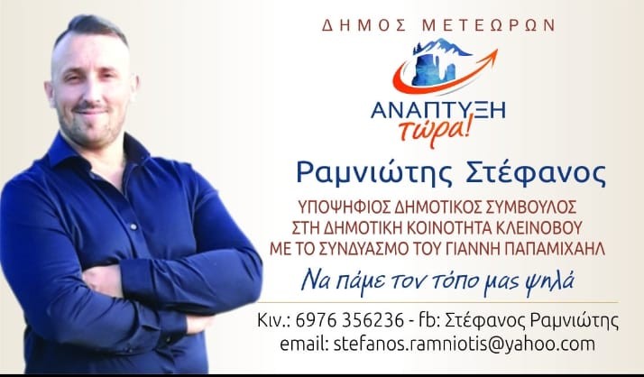 Στέφανος Ραμνιώτης – Υποψήφιος Δημοτικός Σύμβουλος στη Δημοτική Ενότητα Κλεινοβού με τον συνδυασμό του Γιάννη Παπαμιχαήλ