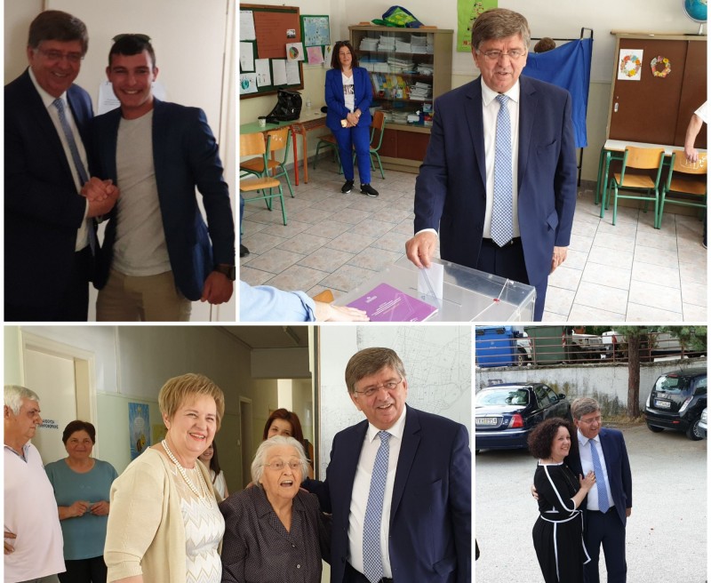 Ο κ. Χρήστος Σινάνης χαιρέτησε τα μέλη των εφορευτικών επιτροπών και άσκησε το εκλογικό του δικαίωμα μαζί με την σύζυγό του και τη μητέρα του.