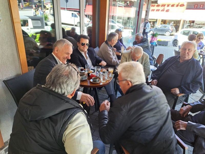 Στη συνέχεια παρακάθησε σε παρέα αυτοδιοικητικών  και καλών φίλων,με τους οποίους αντάλλαξαν απόψεις για την τρέχουσα  επικαιρότητα.