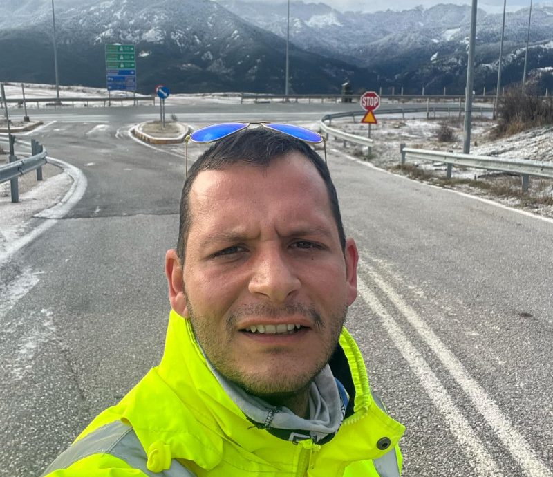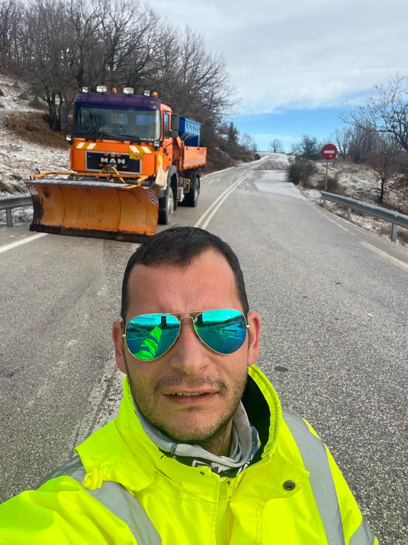 Ένας από αυτούς, ο χειριστής Πάνος Κύργιας που βρίσκεται στο ορεινό οδικό δίκτυο της ε.ο. Τρικάλων – Ιωαννίνων στέλνει τις ευχές του σε ολους για καλες γιορτές με ασφάλεια!
