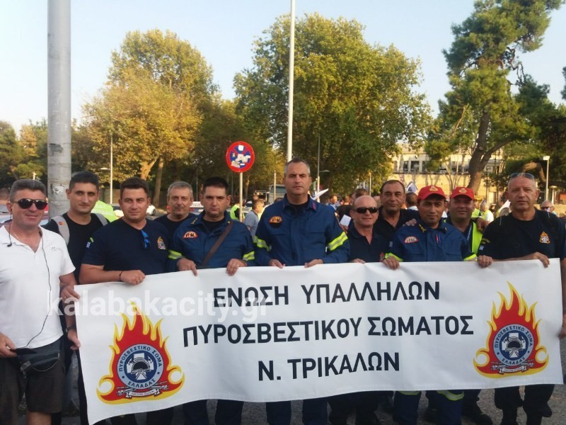 Οι Τρικαλινοί Πυροσβέστες έδωσαν δυναμικό παρόν στην διαμαρτυρία που έγινε, διεκδικώντας και εκείνοι τα σοβαρά αιτήματα του κλάδου τους όπως η αναγνώριση του επαγγέλματός τους ως επικίνδυνου και ανθυγιεινού, κ.α.