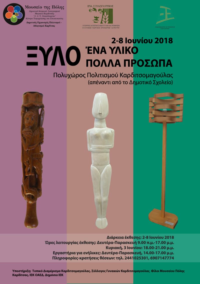 Στον Πολυχώρο Πολιτισμού στην Καρδιτσομαγούλα Καρδίτσας θα πραγματοποιηθεί η έκθεση “Ξύλο – ένα υλικό, πολλά πρόσωπα” από τις 2 έως τις 8 Ιουνίου.