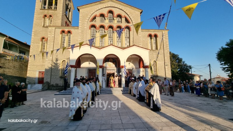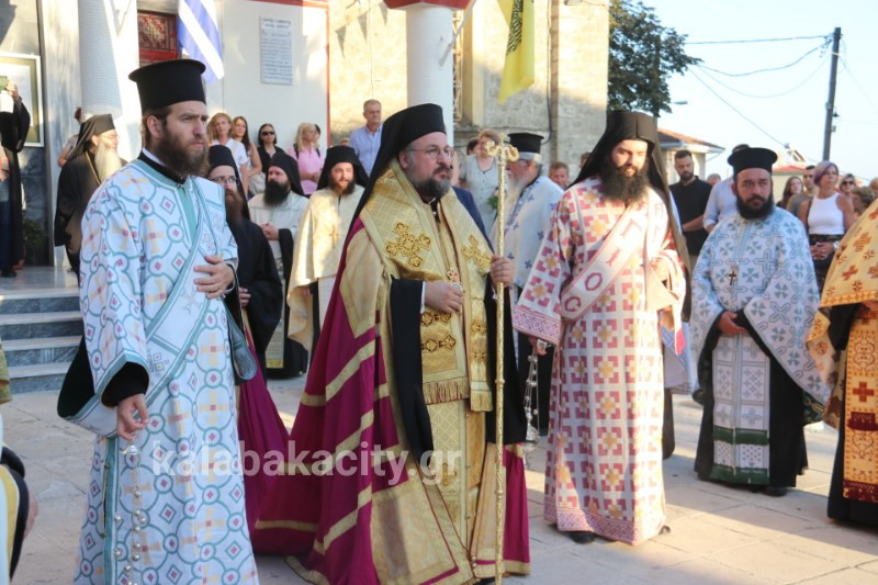 Εν συνεχεία και περί ώραν 8.15 μ.μ. θα πραγματοποιηθή η Λιτάνευσις της ιεράς Εικόνος και της τιμίας Κάρας του Αγίου, διά των οδών Βλαχάβα και Τρικάλων. Εις την κεντρικήν πλατείαν Ρήγα Φερραίου θα ευλογηθή η Αρτοκλασία και θα κηρύξη τον θείον λόγον ο Σεβ. Μητροπολίτης Ιερισσού, Αγ. Όρους και Αρδαμερίου κ. ΘΕΟΚΛΗΤΟΣ.