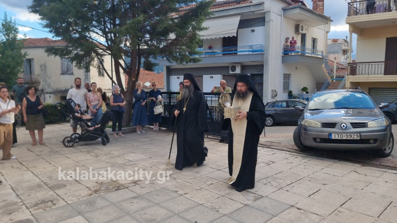 Ἐν συνεχείᾳ καὶ περὶ ὥραν 8.15 μ.μ. θα πραγματοποιηθῇ ἡ Λιτάνευσις τῆς ἱερᾶς Εἰκόνος καὶ τῆς τιμίας Κάρας τοῦ Ἁγίου, διὰ τῶν ὁδῶν Βλαχάβα καὶ Τρικάλων. Εἰς τὴν κεντρικὴν πλατεῖαν Ρήγα Φερραίου θὰ εὐλογηθῇ ἡ Ἀρτοκλασία καὶ θὰ κηρύξη τὸν θεῖον λόγον ὁ Σεβ. Μητροπολίτης Μεσσηνίας κ. ΧΡΥΣΟΣΤΟΜΟΣ.