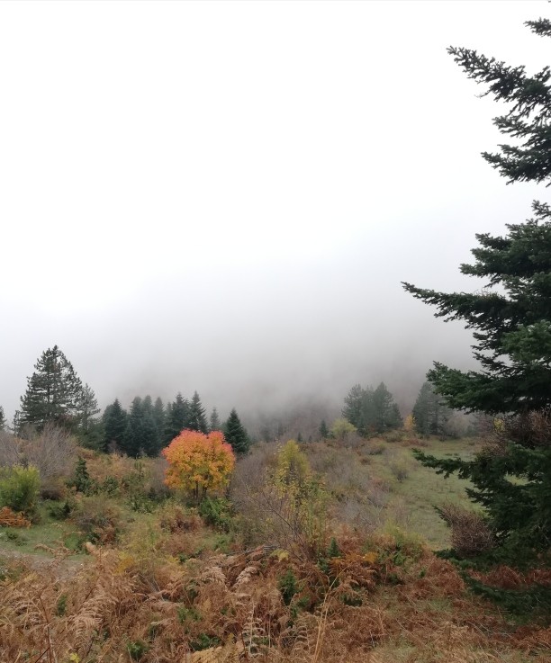 Το τοπίο ήταν ιδιαίτερα όμορφο όχι μόνο λόγω των υπέροχων φθινοπωρινών χρωμάτων, αλλά κυρίως και από την εναλλαγή της ομίχλης και του ήλιου.