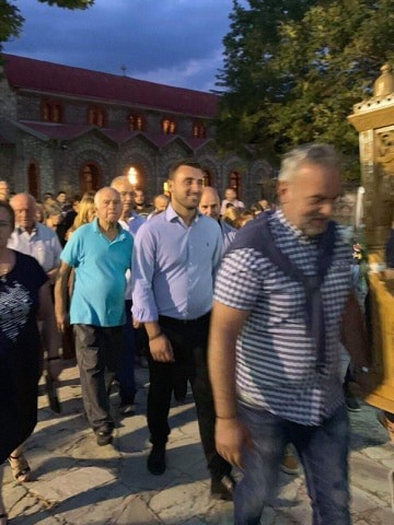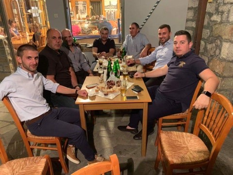 Μετα το πέρας της περιφοράς συνομίλησε με τον επίσης δυναμικό πρόεδρο της Τοπικής Κοινότητας Παναγίας Αναστάσιο Καταραχια και φίλους στο παραδοσιακό καφενείο του «Παλλα».