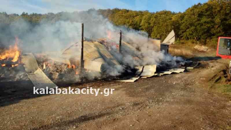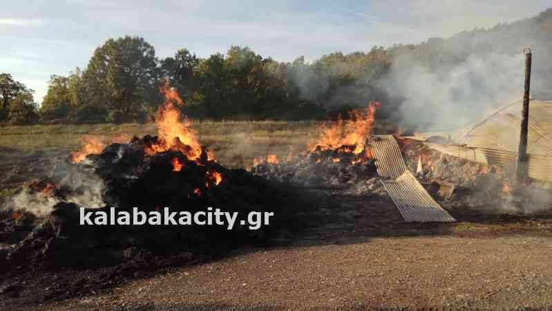 Στις φλόγες τυλίχτηκε σήμερα το πρωί αποθήκη με δέματα χορτάρι στο Αγιόφυλλο Καλαμπάκας τα οποία προοριζόταν για τροφή σε ζώα.
