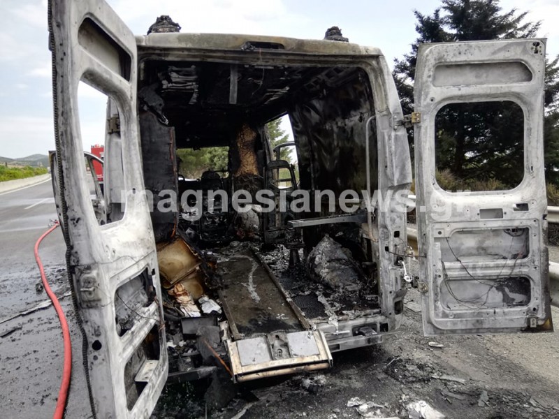 Στις φλόγες τυλίχθηκε λίγα λεπτά μετά τη 1 σήμερα το μεσημέρι ασθενοφόρο που κινούνταν στην Εθνική Οδό και ειδικότερα μετά τον κόμβο του Βελεστίνου στο ρεύμα προς Αθήνα. Οδηγοί που μετακινούνταν και είδαν το περιστατικό δεν πίστευαν στα μάτια τους.