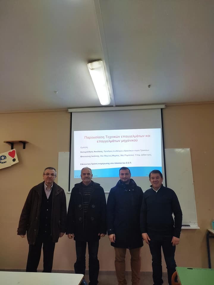 Η παρουσίαση που πραγματοποιήθηκε στους μαθητές, αφορούσε τα τεχνικά επαγγέλματα, τα επαγγέλματα των μηχανικών και την νέα αναδυόμενη επιστήμη της ρομποτικής. Στην παρουσίαση συμμετείχαν οι 57 μαθητές της Γ τάξης του σχολείου, οι οποίοι στο τέλος της παρουσίασης απεύθυναν πολλές ερωτήσεις στους ομιλητές.